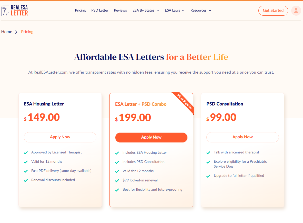 Understanding the costs involved is crucial for anyone seeking an ESA letter. RealESALetter.com offers clear and upfront Pricing information, eliminating hidden fees or surprises. This transparency builds trust and allows individuals to make informed decisions about their services without financial ambiguity.